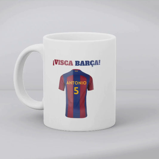 Taza Barcelona Personalizada Con Tu Nombre y Número Favorito. Regalo para Aficionados al Fútbol – Cerámica de Alta Calidad, Apta para Microondas y Lavavajillas