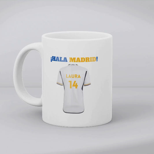 Taza Real Madrid Personalizada Con Tu Nombre y Número Favorito.Regalo para Aficionados al Fútbol – Cerámica de Alta Calidad, Apta para Microondas y Lavavajillas