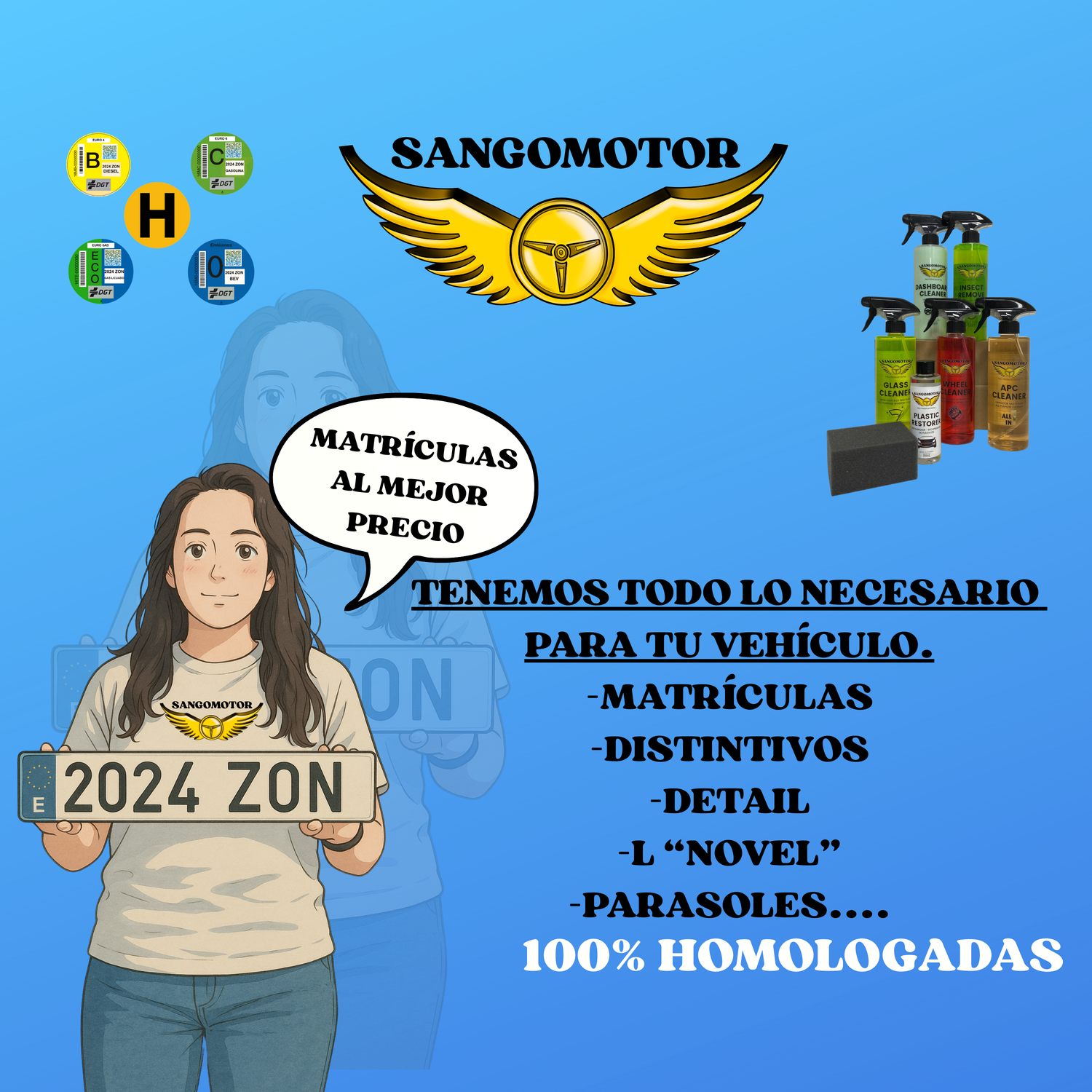 SANGOMOTOR Placa L Novel Para Cristales Tintados Exterior Homologada Por La DGT