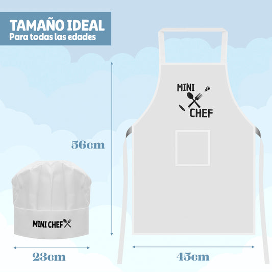Delantal y Gorro Mini Chef para Niño Niña Cocinero con Bolsillo Delantero y Material Ecológico