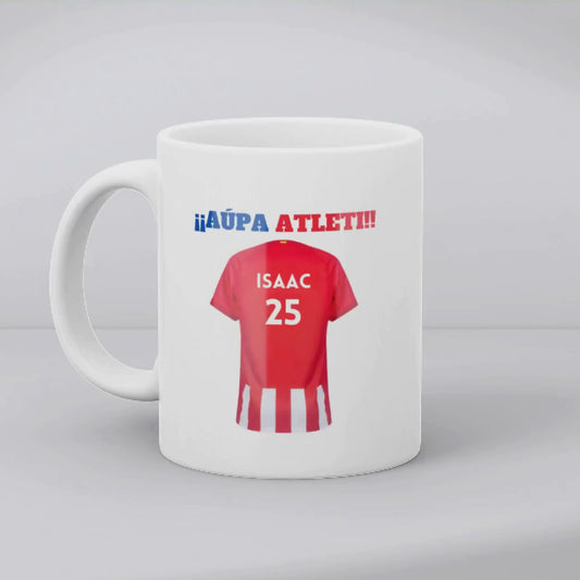Taza Atleti Personalizada Con Tu Nombre y Número Favorito. Regalo para Aficionados al Fútbol – Cerámica de Alta Calidad, Apta para Microondas y Lavavajillas