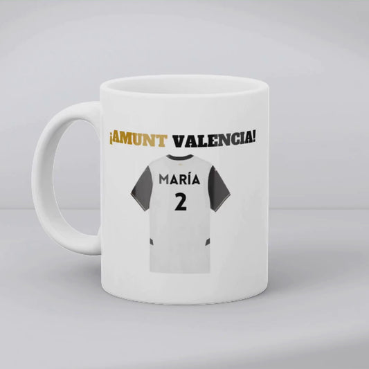 Taza Valencia Personalizada Con Tu Nombre y Número Favorito. Regalo para Aficionados al Fútbol – Cerámica de Alta Calidad, Apta para Microondas y Lavavajillas