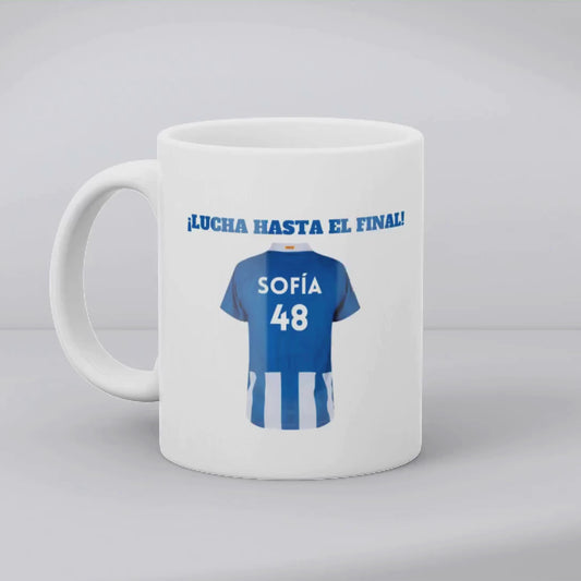 Taza Espanyol Personalizada Con Tu Nombre y Número Favorito. Regalo para Aficionados al Fútbol – Cerámica de Alta Calidad, Apta para Microondas y Lavavajillas