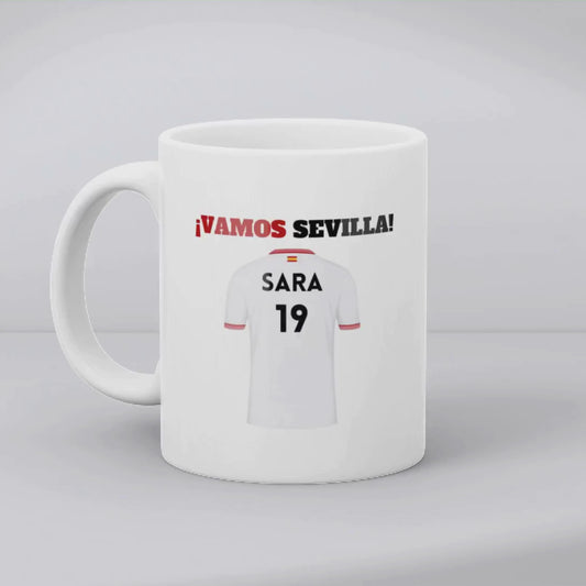 Taza Sevilla Personalizada Con Tu Nombre y Número Favorito. Regalo para Aficionados al Fútbol – Cerámica de Alta Calidad, Apta para Microondas y Lavavajillas