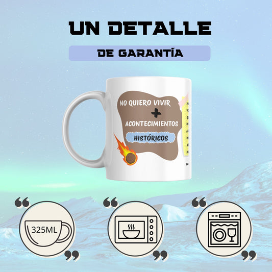 Taza divertida “No quiero vivir más acontecimientos históricos” – Regalo original, cerámica premium 325ml – Humor para amantes de la historia y el café