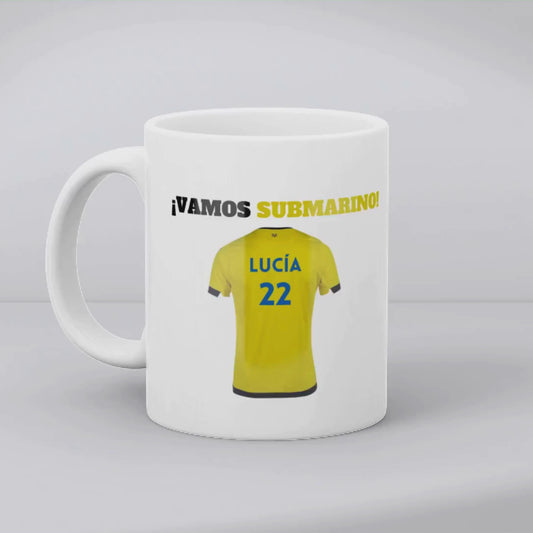 Taza VillaReal Personalizada Con Tu Nombre y Número Favorito. Regalo para Aficionados al Fútbol – Cerámica de Alta Calidad, Apta para Microondas y Lavavajillas