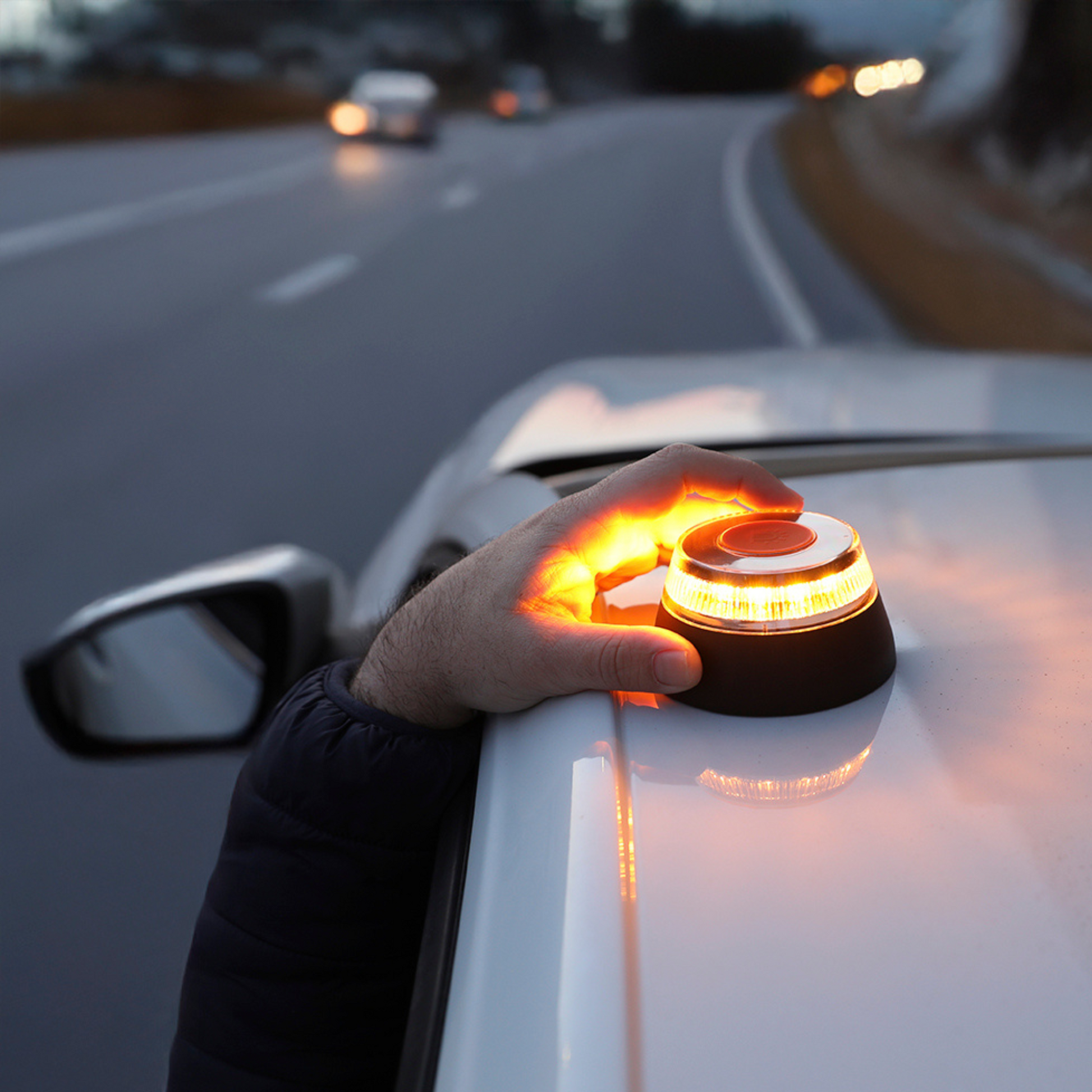 Luz de emergencia V16 Geolocalizada para vehículos. Fabricada conforme a la normativa de seguridad vigente y homologada por laboratorio acreditado IDIADA, según requisitos de la DGT , con número de homologación marcado en la parte inferior del artículo. Obligatoria en 2026! Incluye una tarjeta SIM conectada con Telefónica Tech, con servicio de comunicación de datos hasta 12/2038, sin gastos ni cuotas adicionales. De activación manual y con base de fijación magnética. Resistencia al viento de hasta 180Pa, visibilidad 360° -hasta 1 km de distancia- y resistencia al agua conforme a estándares IP54. De tamaño compacto para guardar en cualquier compartimento del vehículo y tenerla a mano en caso de emergencia. Presentada en caja individual de diseño. Manual incluido (español e inglés). Alimentación a pilas (3xAA pilas alcalinas incluidas), con una autonomía de 6 horas.