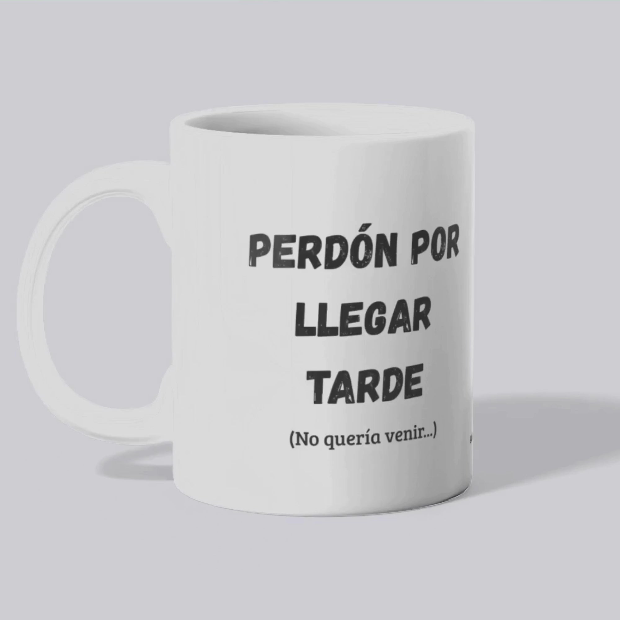 La taza “Perdón por llegar tarde (no quería venir)” es el accesorio ideal para empezar el día con una sonrisa… y dejar claro tu entusiasmo por las reuniones. 😏
