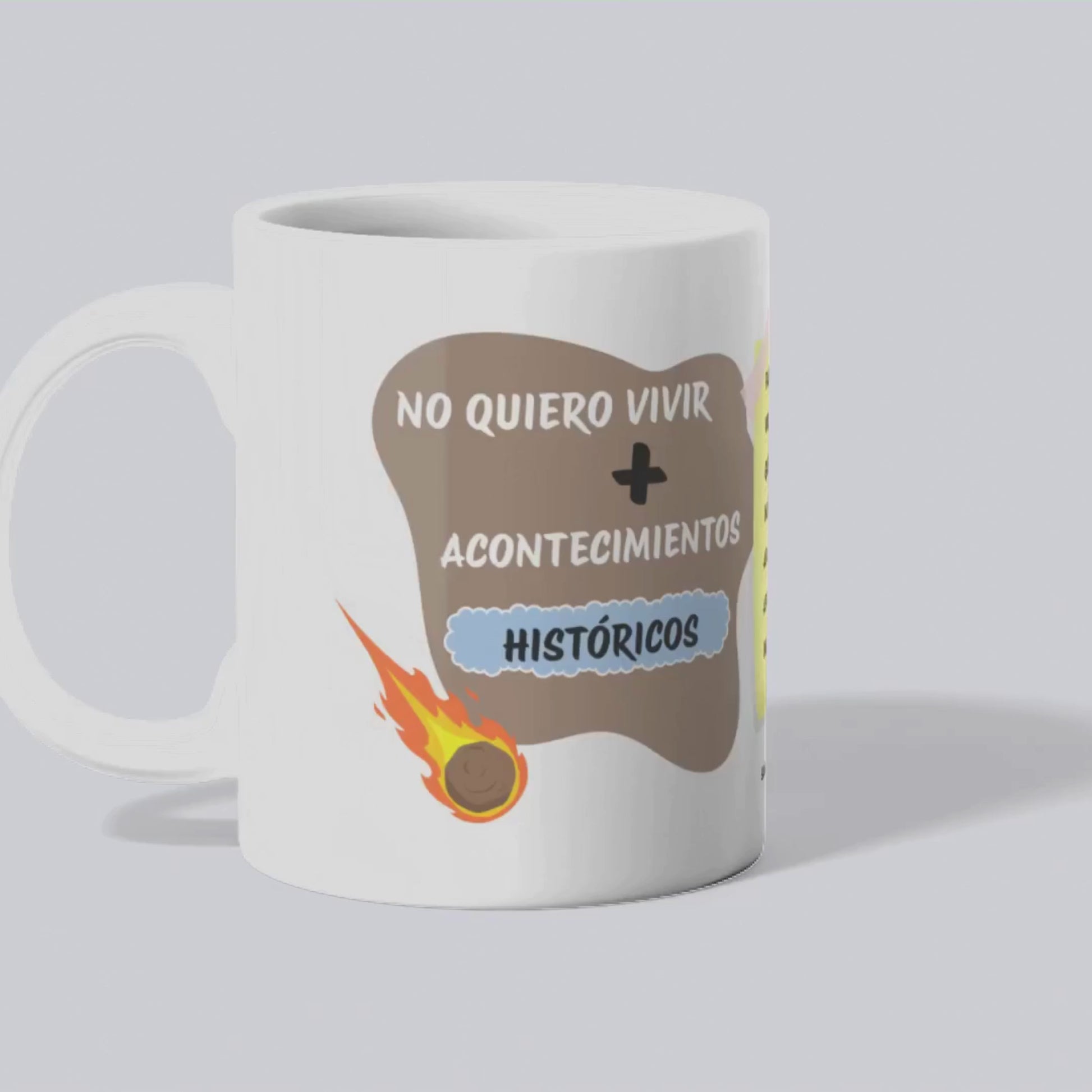 ¿Te suena la frase “No quiero vivir más acontecimientos históricos”? Entonces esta taza es tu alma gemela en cerámica. Captura perfectamente el espíritu de nuestra generación: cansada, irónica y con la necesidad urgente de un café.